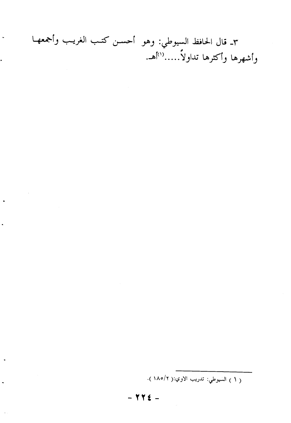 3- قال الحافظ السيوطي: "وهو أحسن كتب الغريب وأجمعها وأشهرها وأكثرها تداولاً". 1