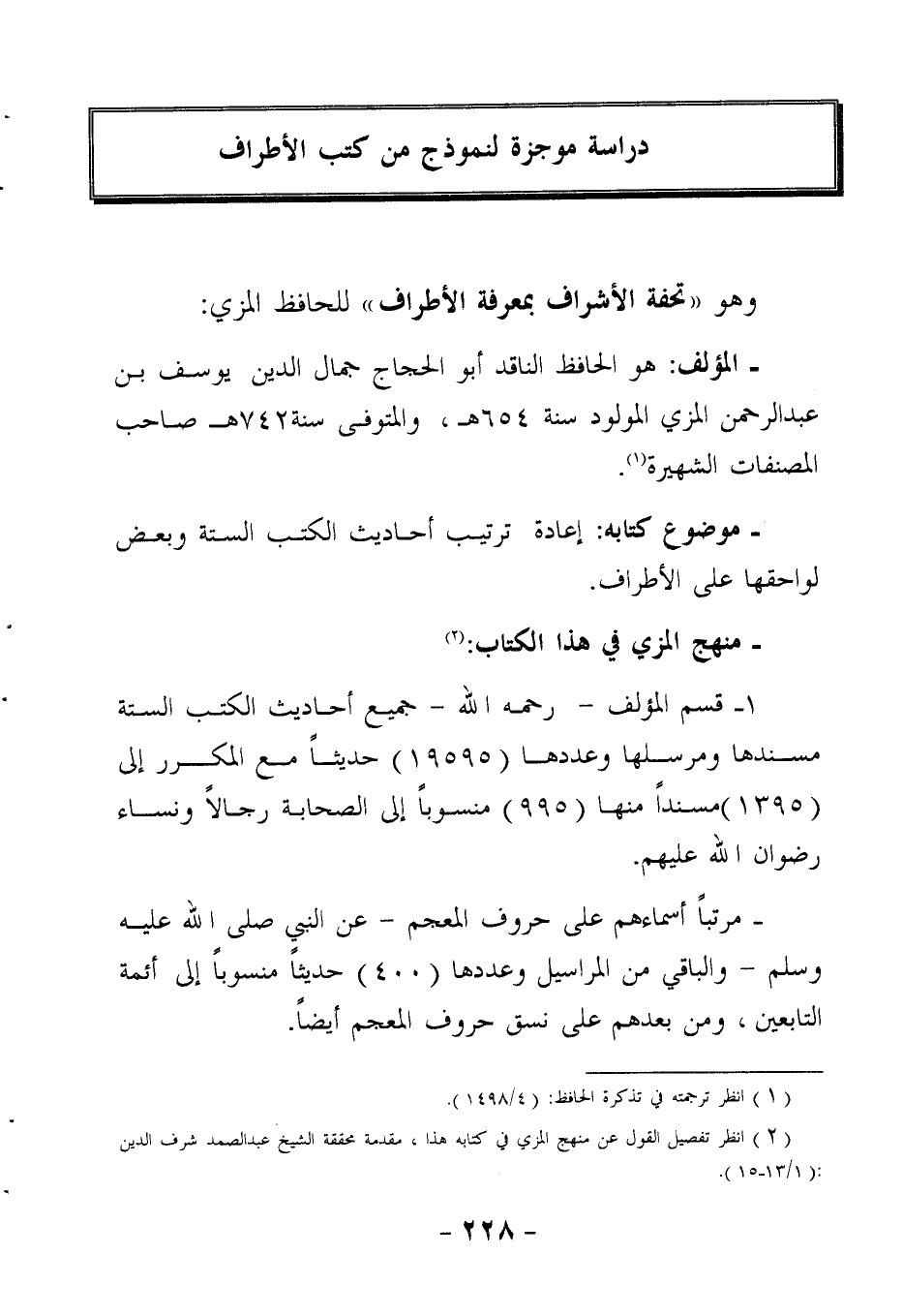 2 انظر تفصيل القول عن منهج المزي في كتابه هذا: مقدمة محققه الشيخ عبد الصمد شرف الدين 1 / 13 – 15.