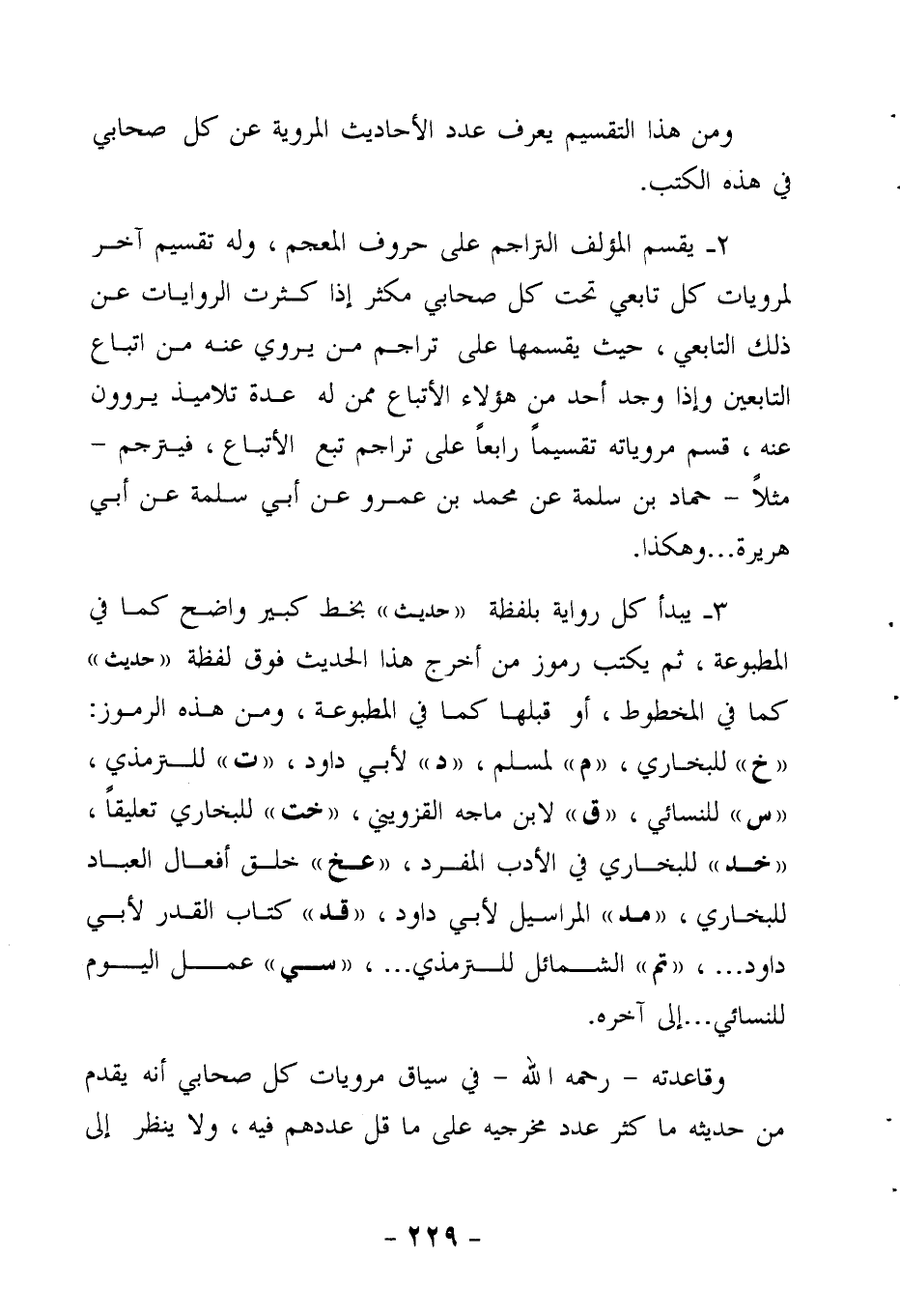 ومن هذا التقسيم يعرف عدد الأحاديث المروية عن كل صحابى في هذه الكتب.