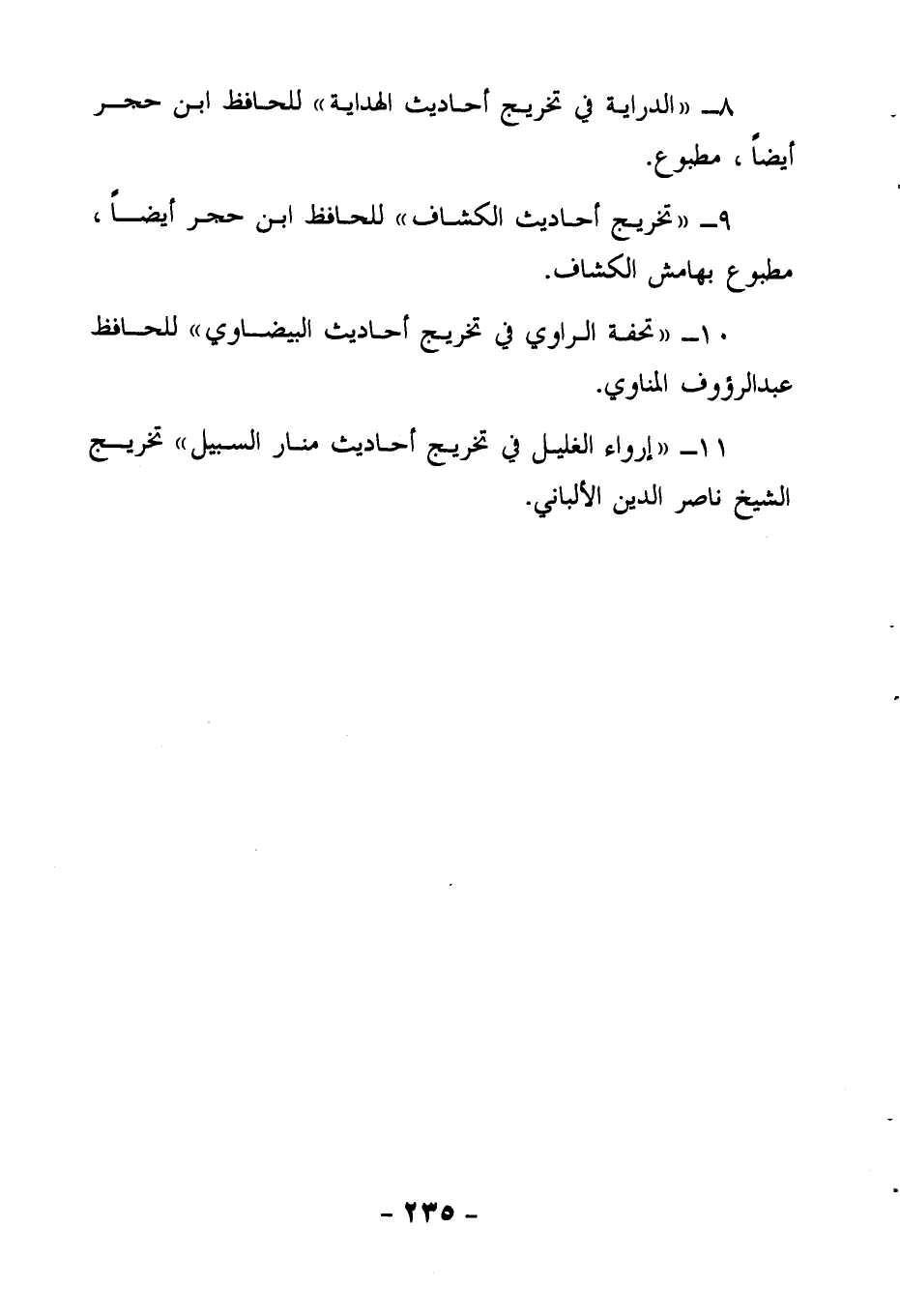 11- إرواء الغليل في تخريج أحاديث منار السبيل تخريج الشيخ ناصر الدين الألبانى.