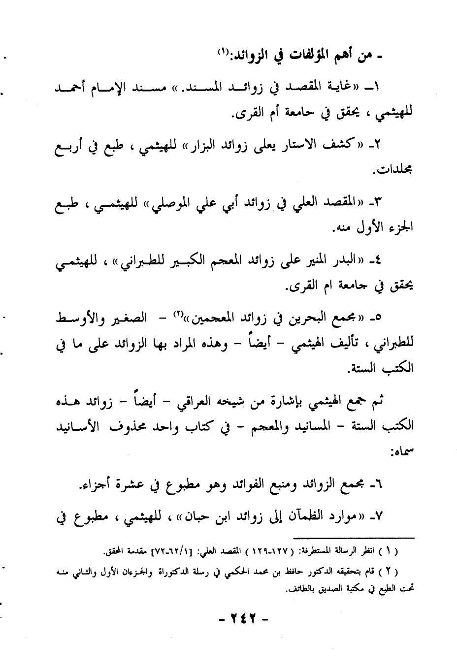 6- مجمع الزوائد ومنبع الفوائد وهو مطبوع في عشرة أجزاء.