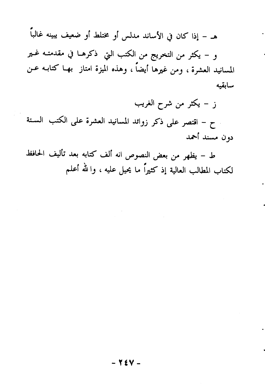 ط- يظهر من بعض النصوص أنه ألف كتابه بعد تأليف الحافظ لكتاب "المطالب العالية" إذ كثيراً ما يحيل عليه، والله أعلم.
