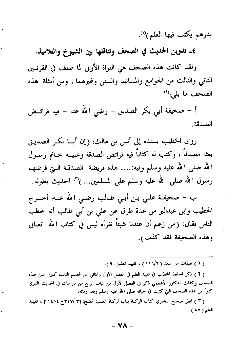 3 انظر: صحيح البخاري – كتاب الزكاة – باب زكاة الغنم الفتح 3 / 317 ح 1454، تقييد العلم ص: 87.