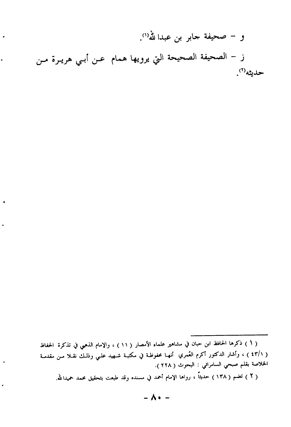 2 تضم 138 حديثاً، رواها الإمام أحمد في مسنده، وقد طبعت بتحقيق محمد حميد الله.