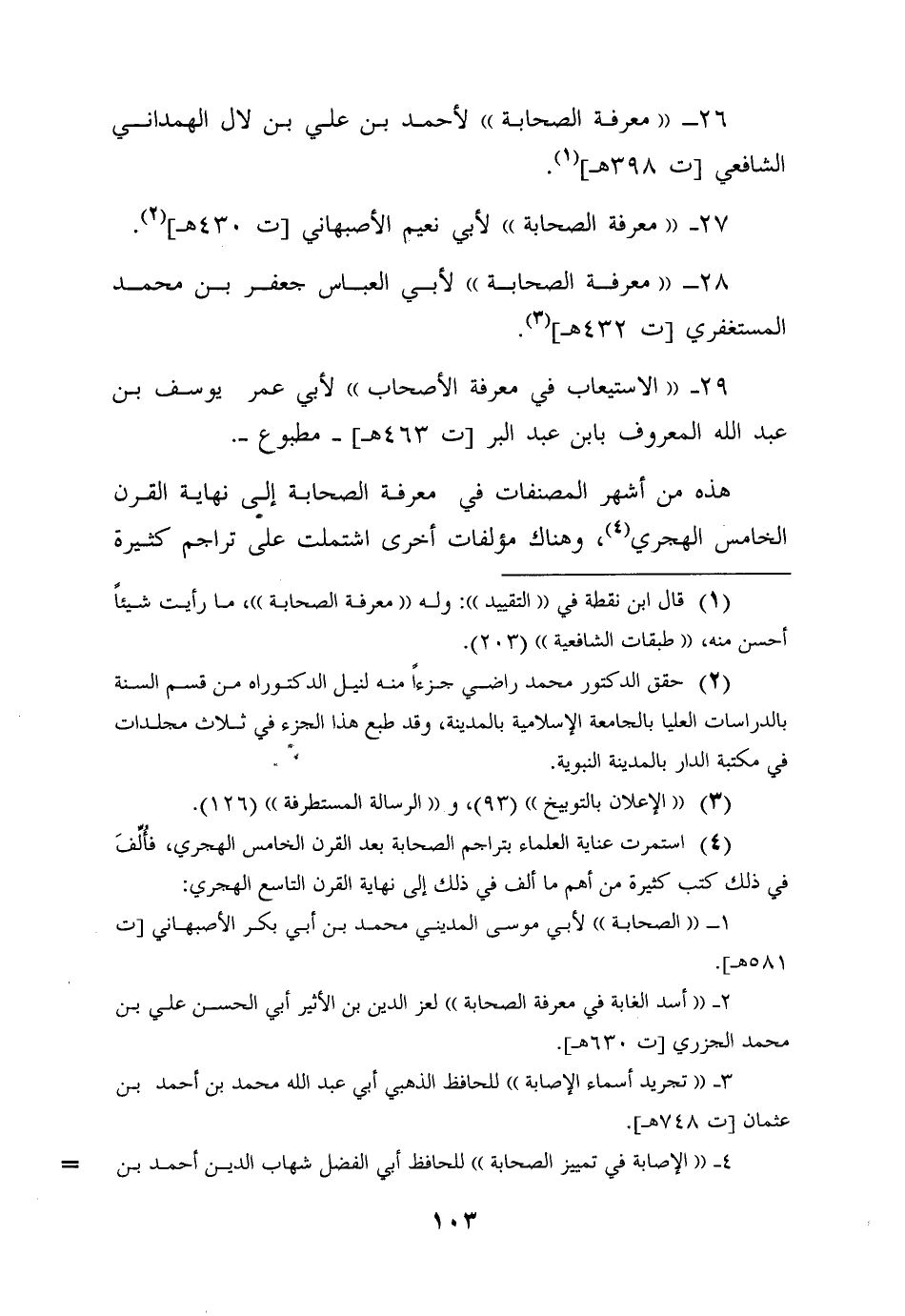 4- الإصابة في تمييز الصحابة للحافظ أبي الفضل شهاب الدين أحمد بن علي بن حجر العسقلاني (ت 852 هـ) ، وهذه الثلاثة الأخيرة مطبوعة مشهورة ومتداولة.