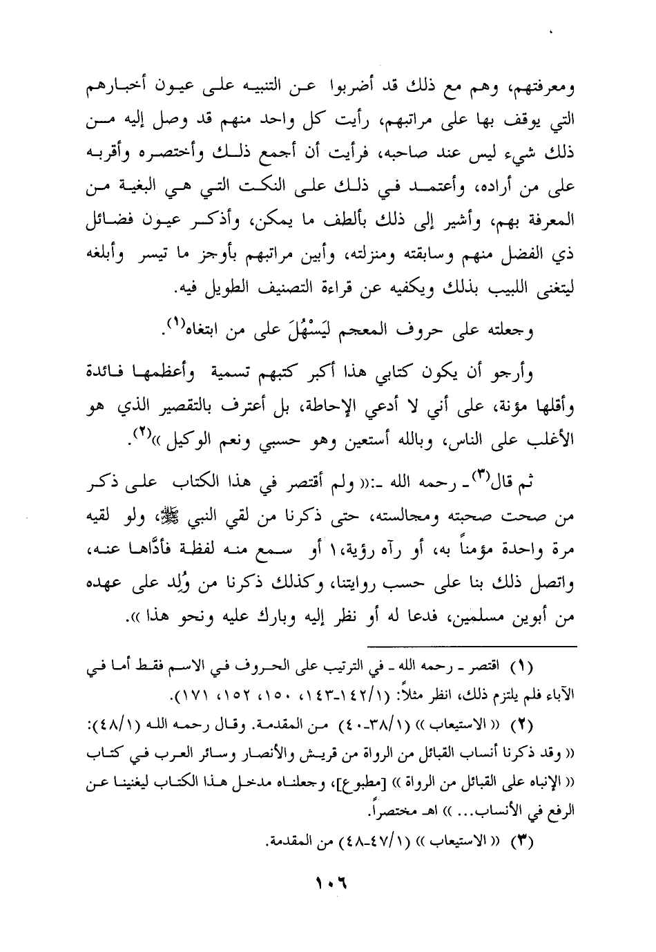 2الاستيعاب (1 / 38 - 30) من المقدمة، وقال رحمه الله (1 / 48) :