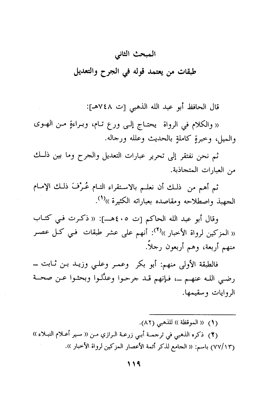 المبحث الثاني: طبقات من يعتمد قوله في الجرح والتعديل