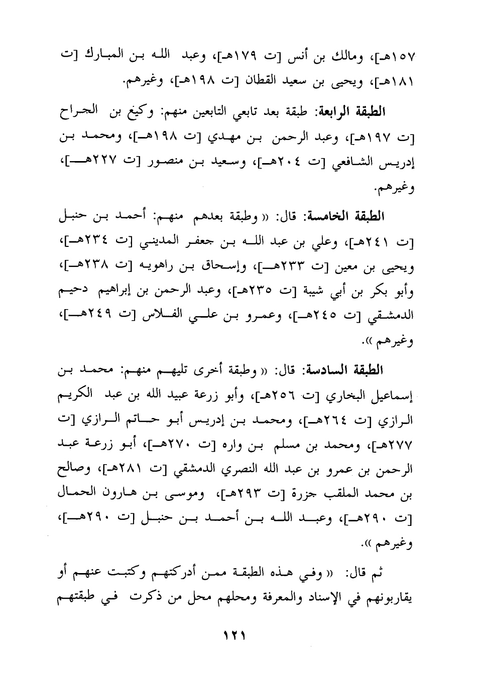الطبقة الخامسة: قال: وطبقة بعدهم منهم: أحمد بن حنبل