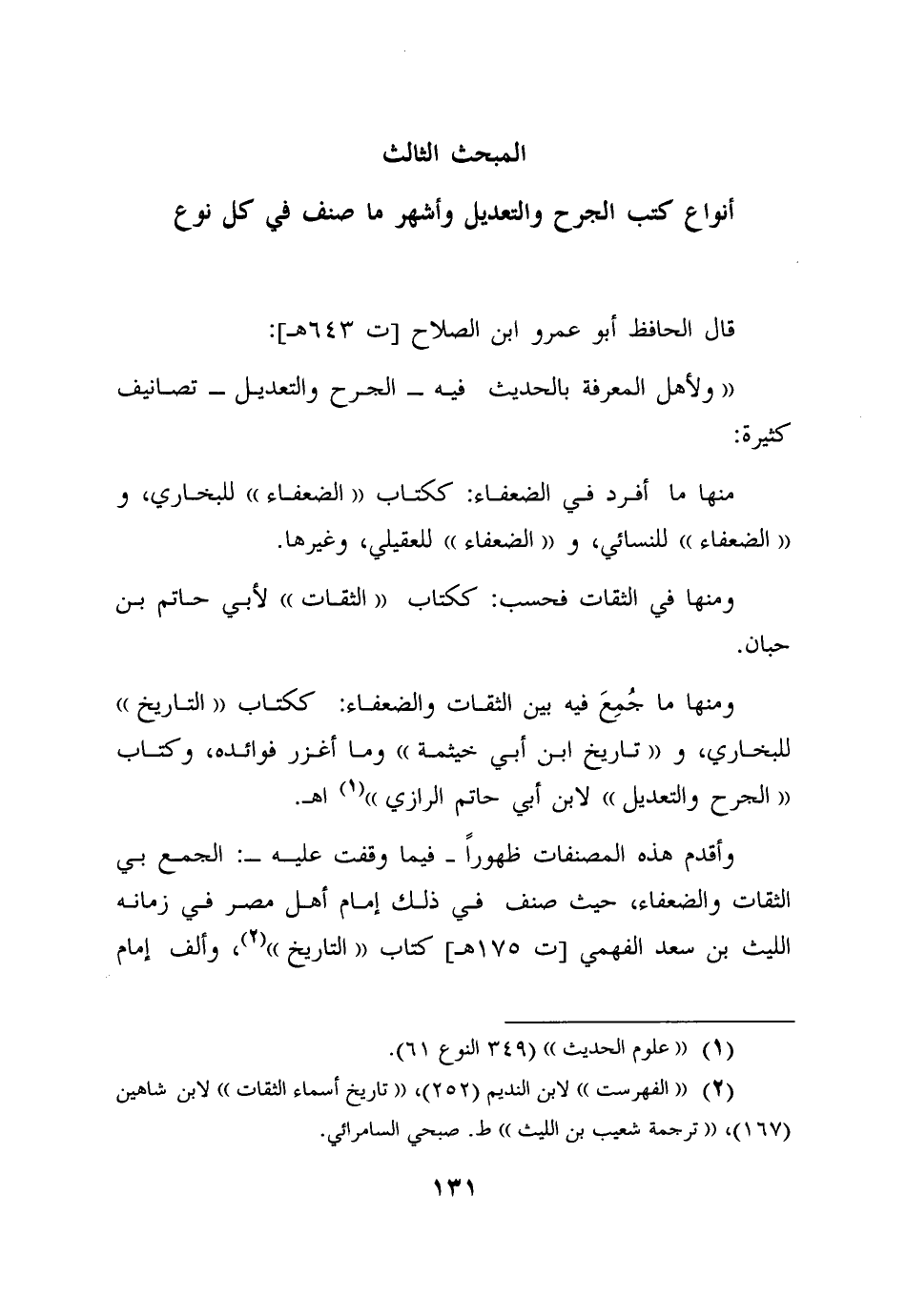"ولأهل المعرفة بالحديث فيه - الجرح والتعديل - تصانيف كثيرة: