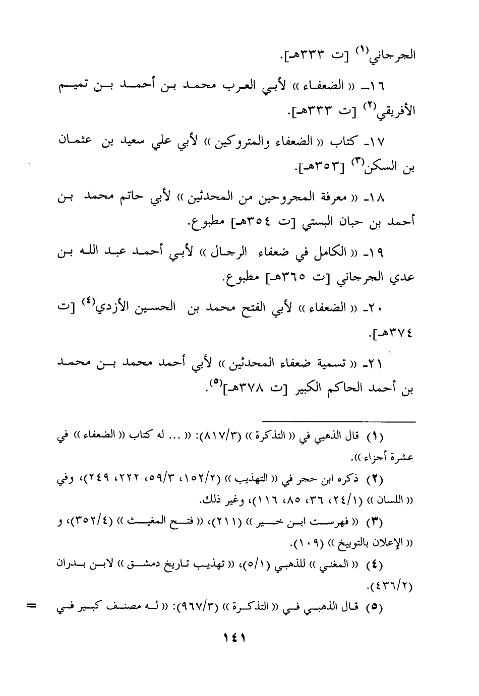 21- تسمية ضعفاء المحدثين لأبى أحمد محمد بن محمد بن أحمد الحاكم الكبير (ت 378 هـ) . 5