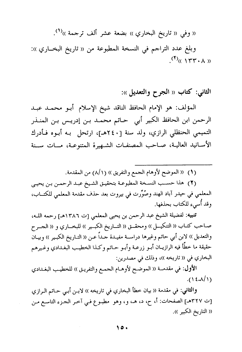 "وفي تاريخ البخاري بضعة عشر ألف ترجمة". 1