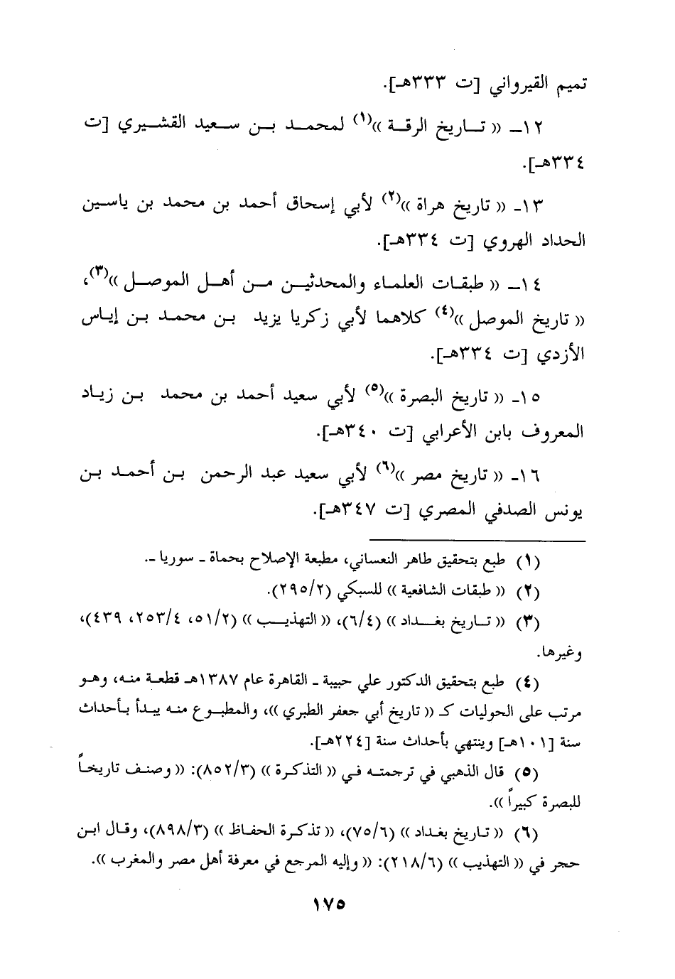 12- تاريخ الرقة 1 لمحمد بن سعيد القشيري (ت 334 هـ) .