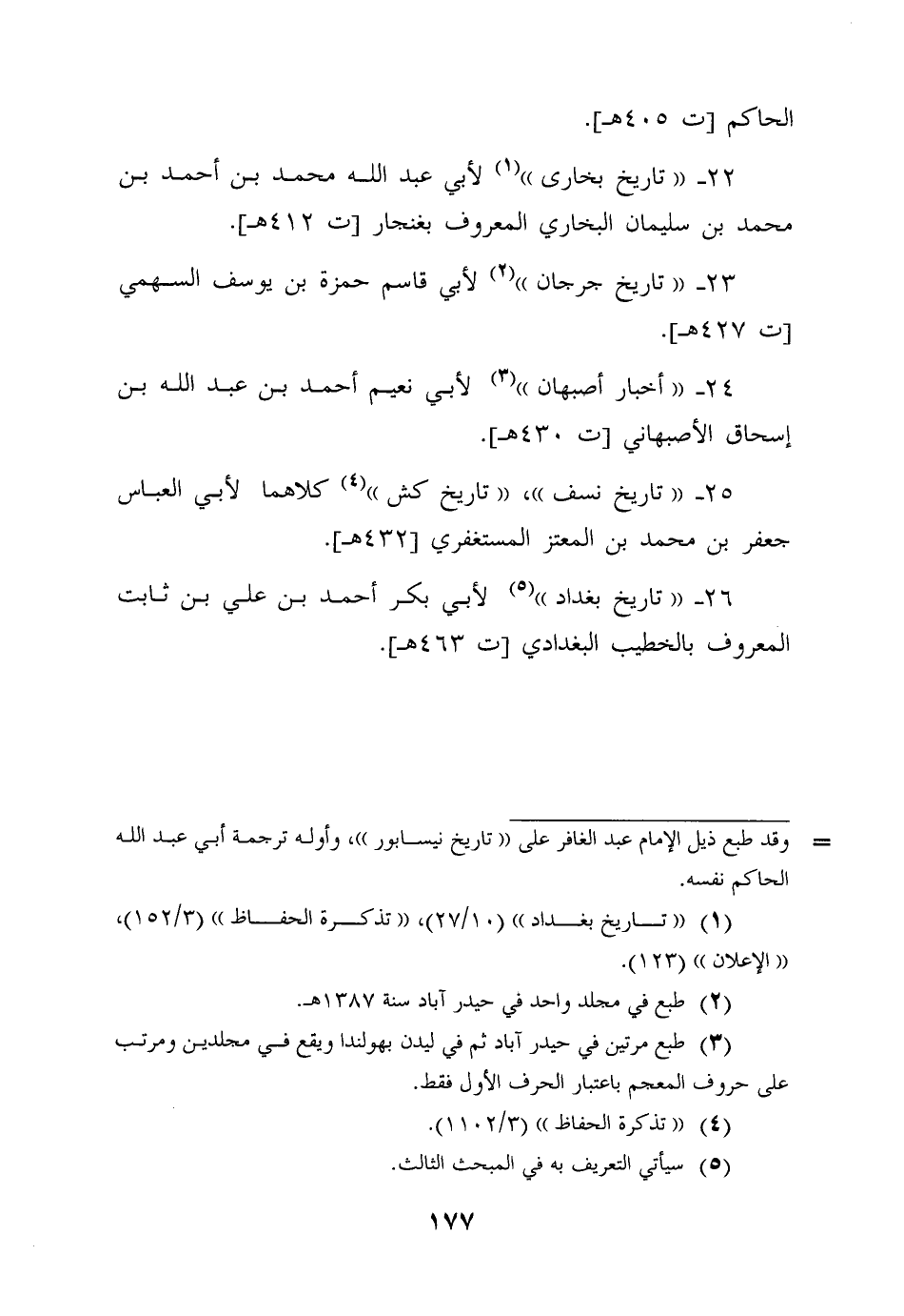 26- تاريخ بغداد 5 لأبي بكر أحمد بن علي بن ثابت المعروف بالخطيب البغدادي (ت 463 هـ) .