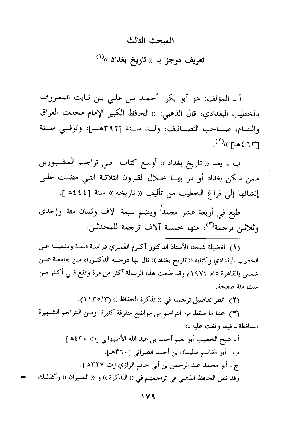 المبحث الثالث: تعريف موجز بـ "تاريخ بغداد". 1