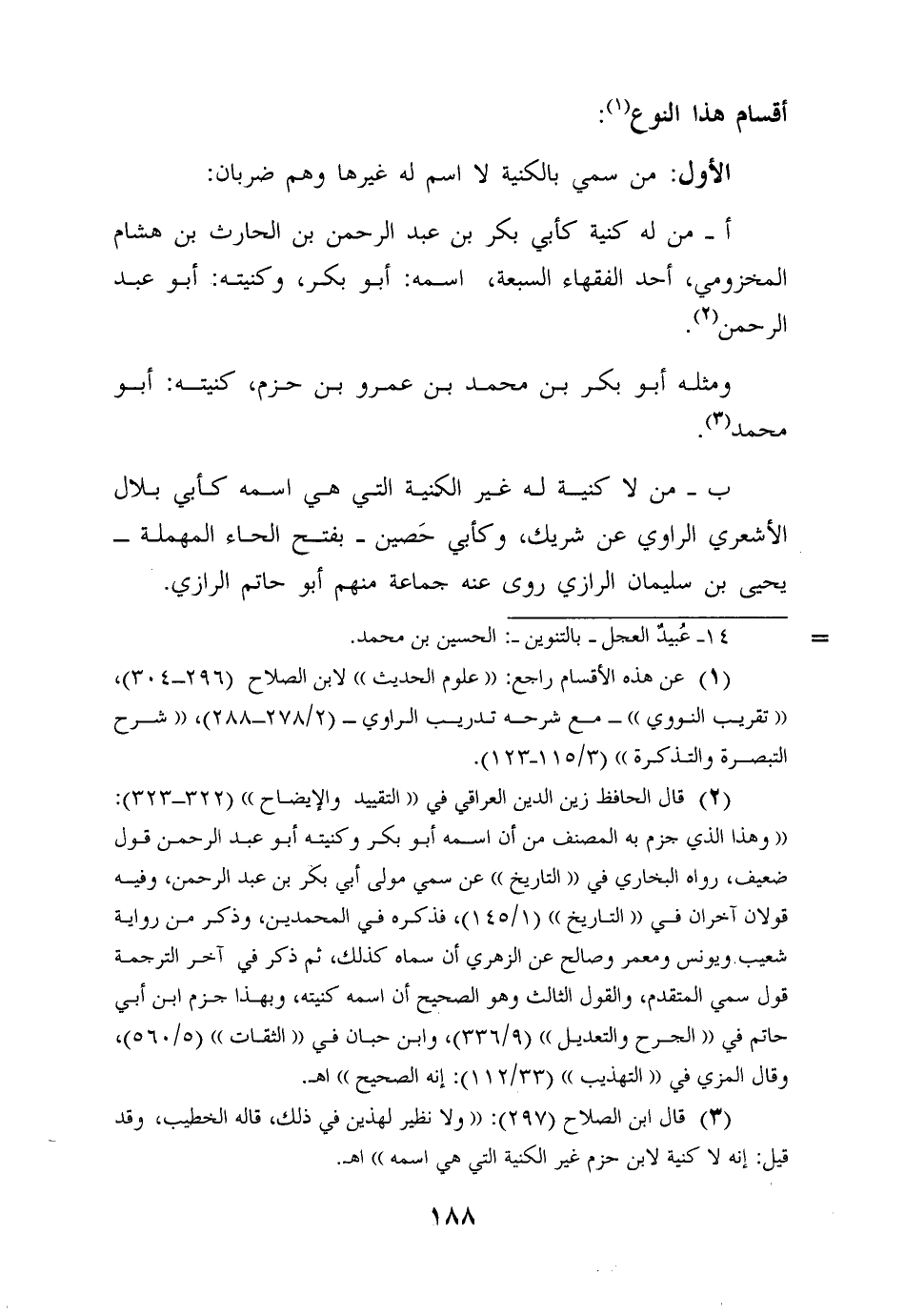 3قال ابن الصلاح (ص: 297) : "ولا نظير لهذين في ذلك، قاله الخطيب، وقد قيل: إنه لا كنية لابن حزم غير الكنية التي هي اسمه".