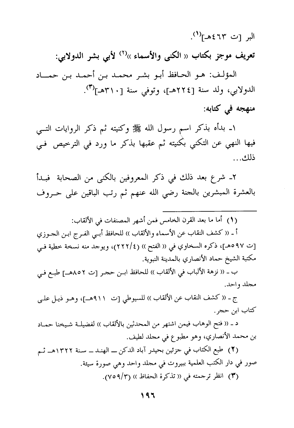 تعريف موجز بكتاب "الكنى والأسماء" 2 لأبي بشر الدولابي: