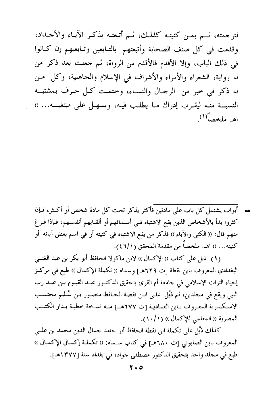 لترجمته، ثم بمن كنيته كذلك، ثم أتبعته بذكر الآباء والأجداد، وقدمت في كل صنف الصحابة وأتبعتهم بالتابعين وتابعيهم إن كانوا في ذلك الباب، وإلا الأقدم فالأقدم من الرواة، ثم جعلت بعد ذكر من له رواية، الشعراء والأمراء والأشراف في الإسلام والجاهلية، وكل من له ذكر في خبر من الرجال والنساء، وختمت كل حرف بمشتبه النسبة منه ليقرب إدراك ما يطلب فيه، ويسهل على مبتغيه" اهـ ملخصاً. 1