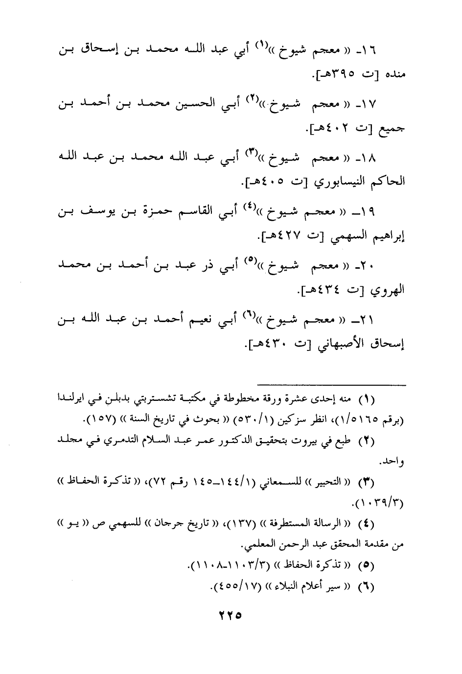 21- معجم شيوخ 6 أبي نعيم أحمد بن عبد الله بن إسحاق الأصبهاني (ت 430 هـ) .