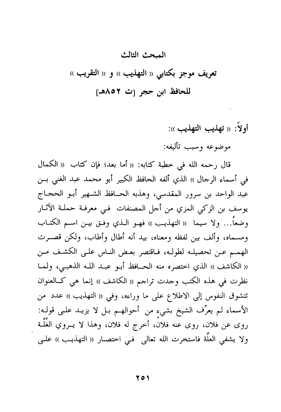 المبحث الثالث: تعريف موجز بكتابي "التهذيب" و "التقريب" للحافظ ابن حجر (ت 852 هـ)