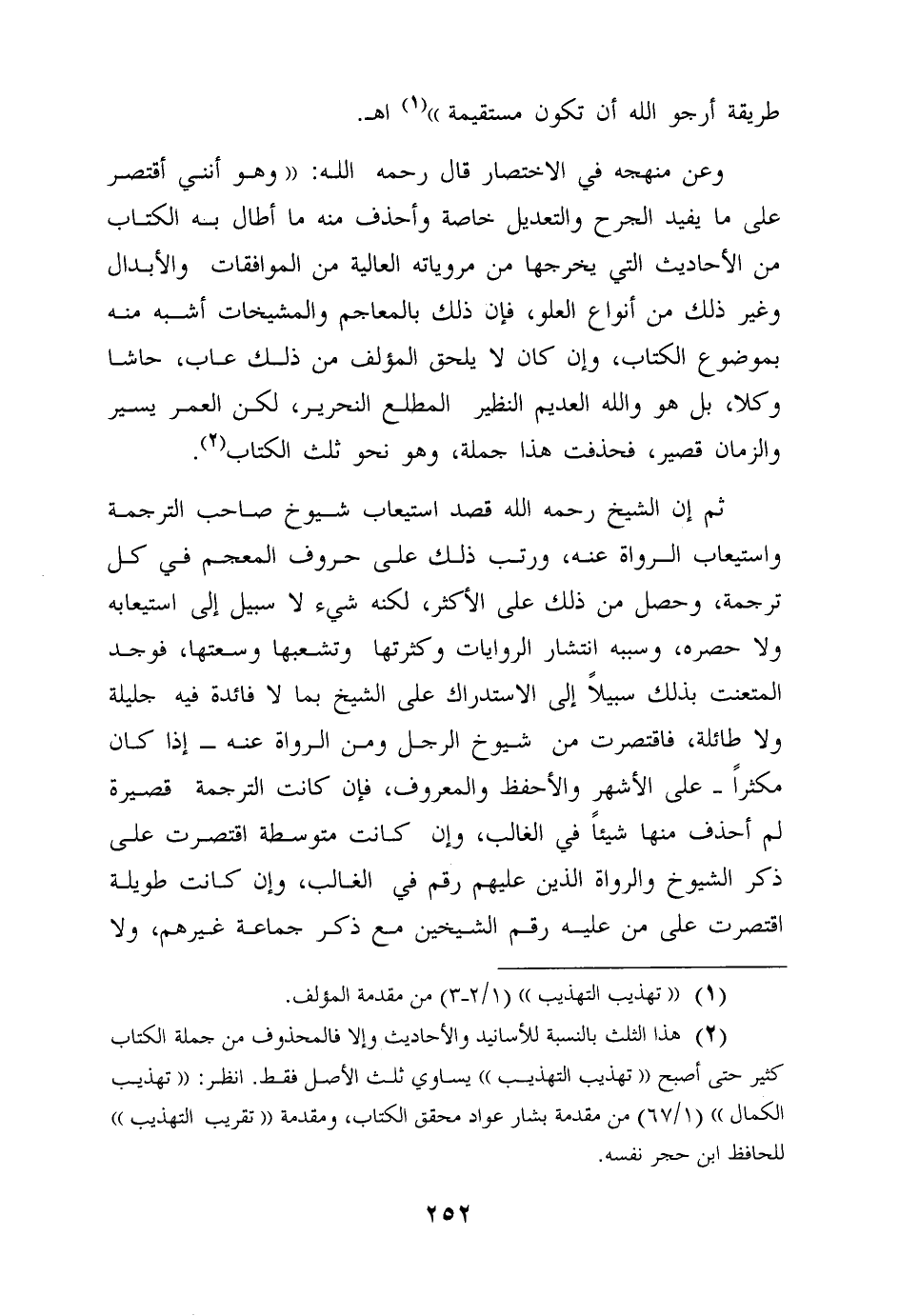 2هذا الثلث بالنسبة للأسانيد والأحاديث وإلا فالمحذوف من جملة الكتاب كثير حتى أصبح تهذيب التهذيب يساوي ثلث الأصل فقط. انظر: تهذيب الكمال (1 / 67) من مقدمة بشار عواد محقق الكتاب، ومقدمة تقريب التهذيب للحافظ ابن حجر نفسه.