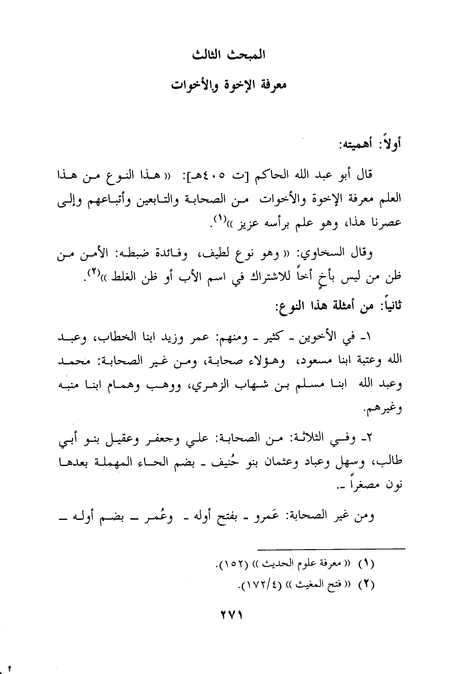قال أبو عبد الله الحاكم (ت 405 هـ) : "هذا النوع من هذا العلم معرفة الإخوة والأخوات من الصحابة والتابعين وأتباعهم وإلى عصرنا هذا، وهو علم برأسه عزيز". 1