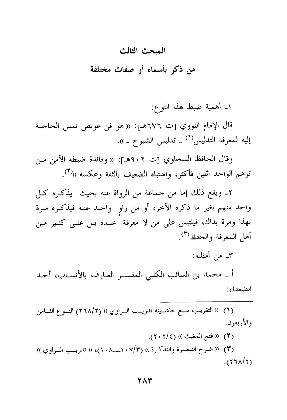 قال الإمام النووي (ت 676 هـ) : "هو فن عويص تمس الحاجة إليه لمعرفة التدليس 1 - تدليس الشيوخ -".