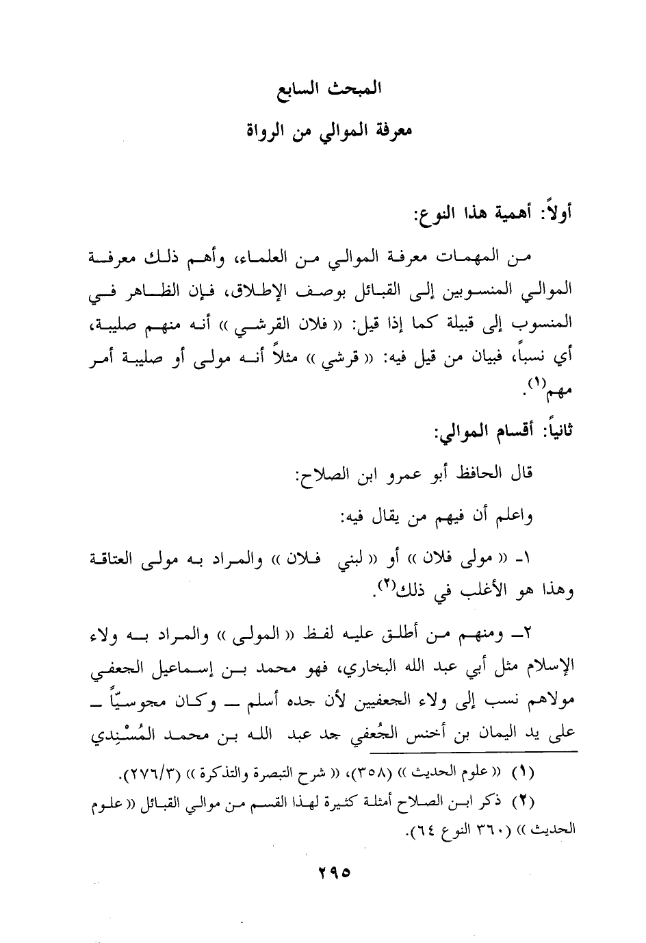 2ذكر ابن الصلاح أمثلة كثيرة لهذا القسم من موالي القبائل. علوم الحديث (ص: 360) رقم 64.