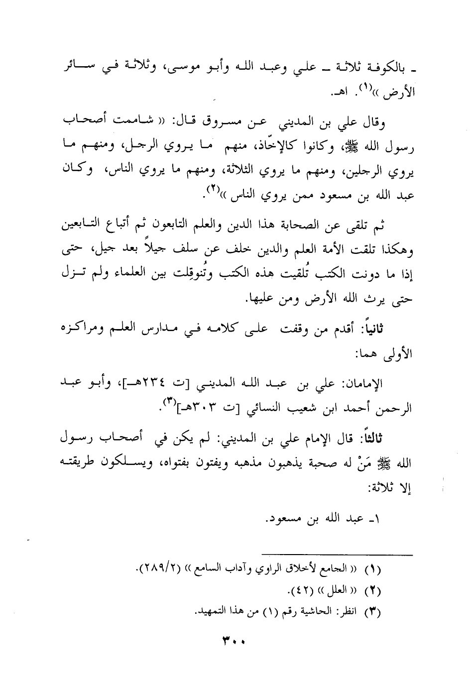 ثانياً: أقدم من وقفت على كلامه في مدارس العلم ومراكزه الأولى هما الإمامان: علي بن عبد الله المديني (ت 234 هـ) ، وأبو عبد الرحمن أحمد بن شعيب النسائي (ت 303 هـ) . 3