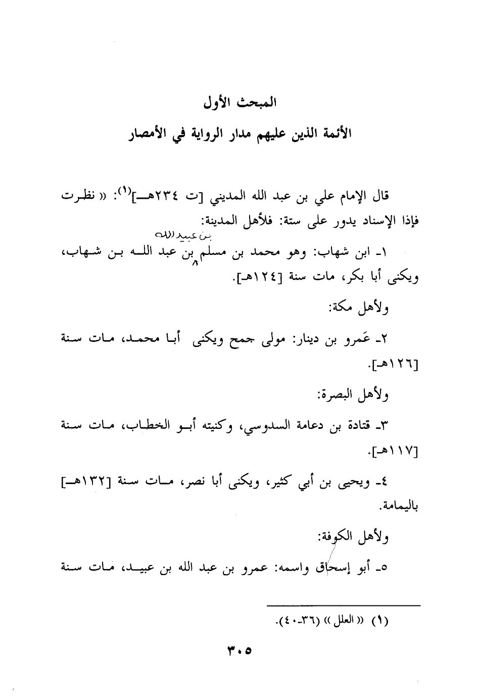 الفصل الأول: مدارس العلم ومراكزه الأولى بحسب ما ذكره الإمام ابن المديني