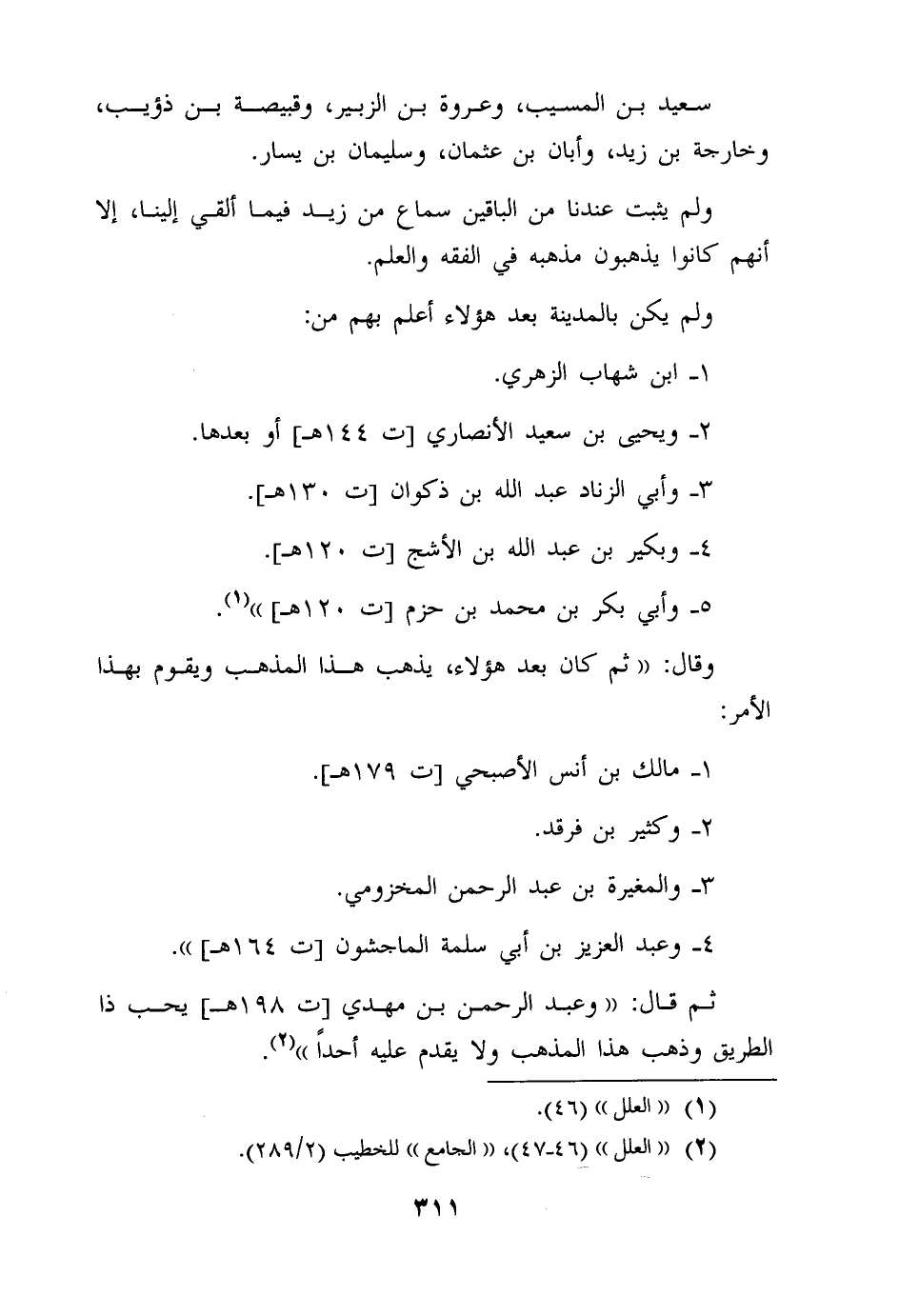 ولم يكن بالمدينة بعد هؤلاء أعلم بهم من: