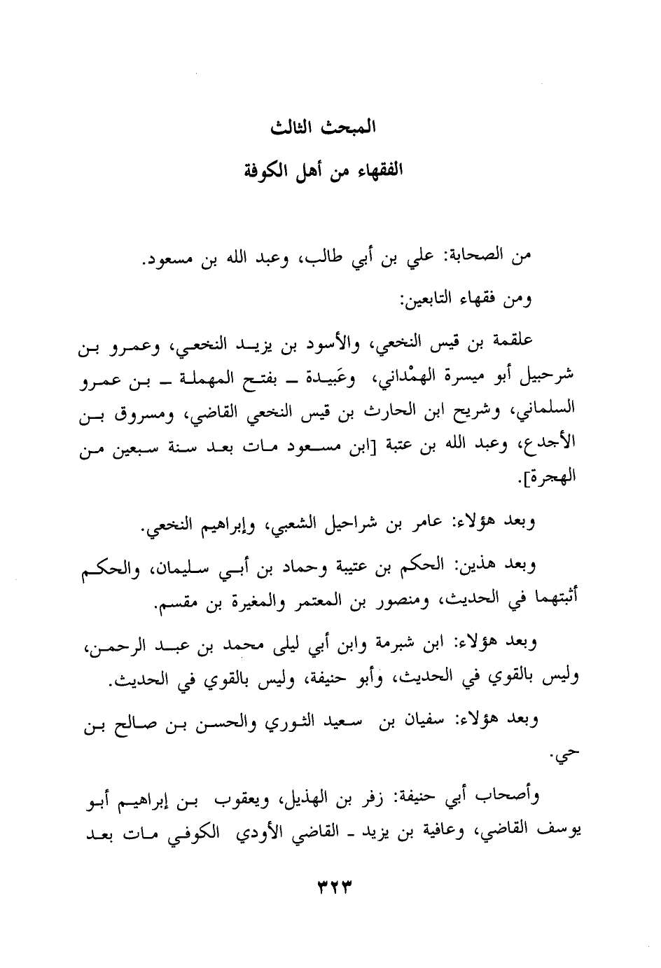 المبحث الثالث: الفقهاء من أهل الكوفة