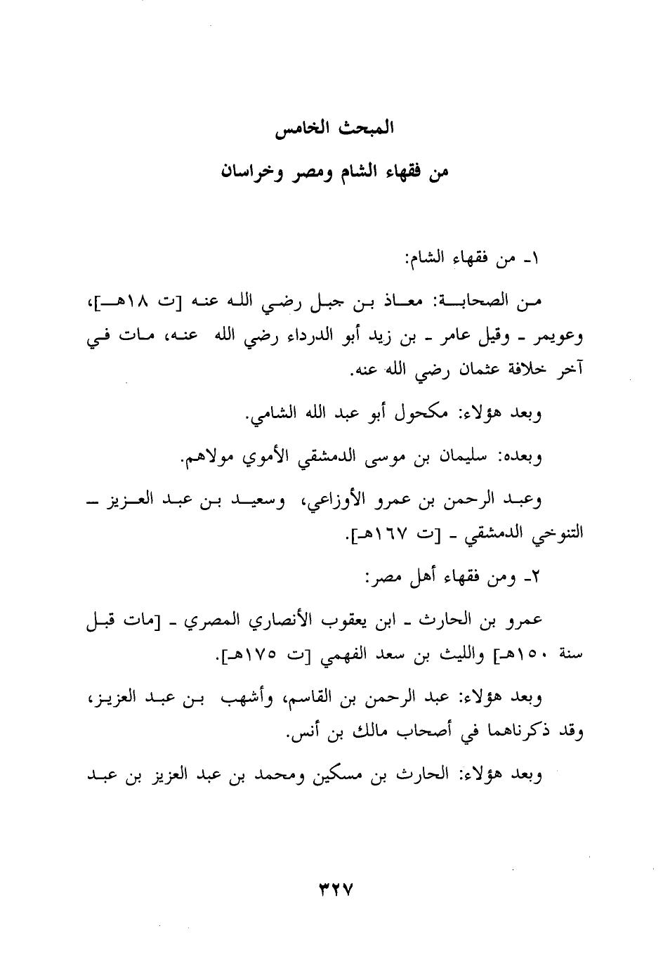 المبحث الخامس: من فقهاء الشام ومصر وخراسان
