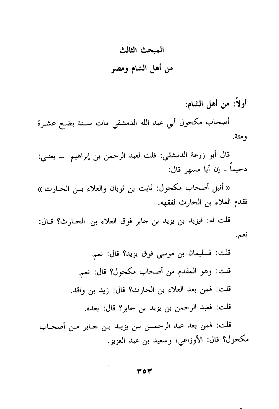 قلت: فمن بعد عبد الرحمن بن يزيد بن جابر من أصحاب مكحول قال: الأوزاعي، وسعيد بن عبد العزيز.