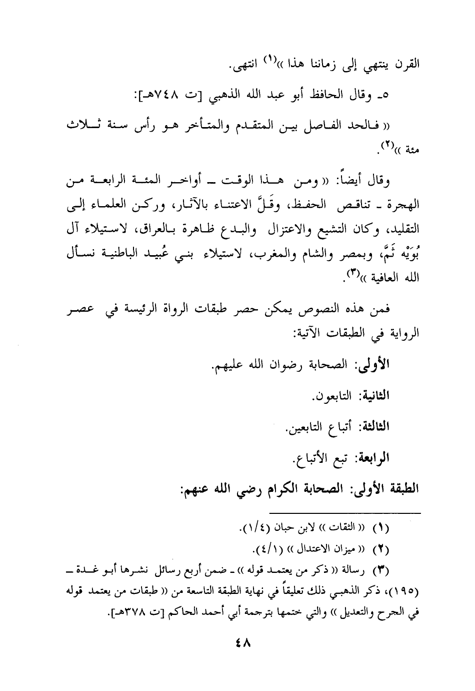 "فالحد الفاصل بين المتقدم والمتأخر هو رأس سنة ثلاث مائة". 2