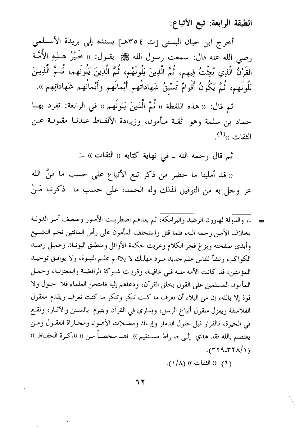 ثم قال رحمه الله - في نهاية كتابه "الثقات" -: