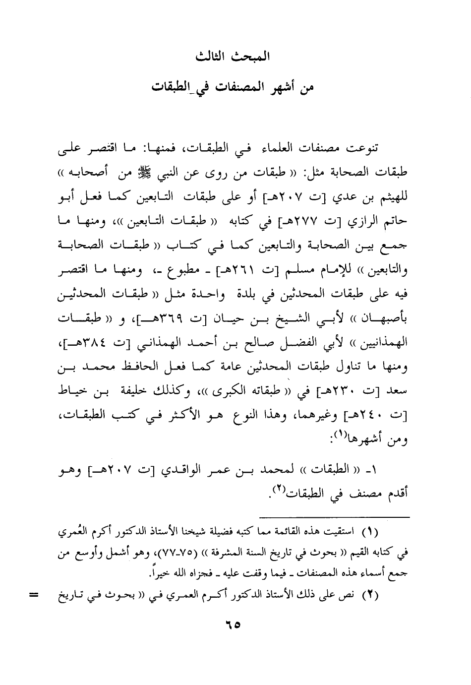 1- الطبقات لمحمد بن عمر الواقدي (ت 207 هـ) وهو أقدم مصنف في الطبقات. 2