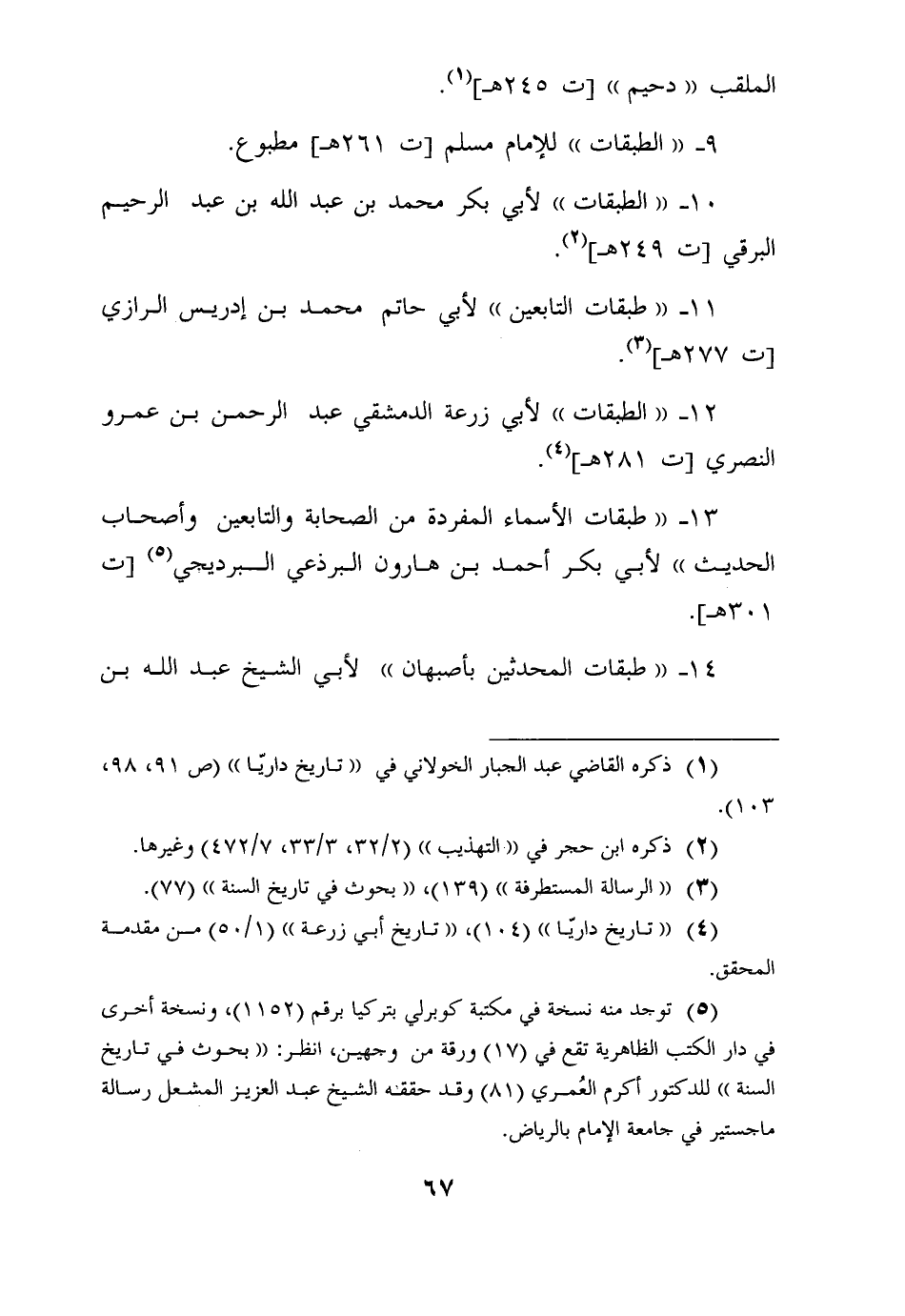 12- الطبقات لأبي زرعة الدمشقي عبد الرحمن بن عمرو النصري (ت 281 هـ) . 4