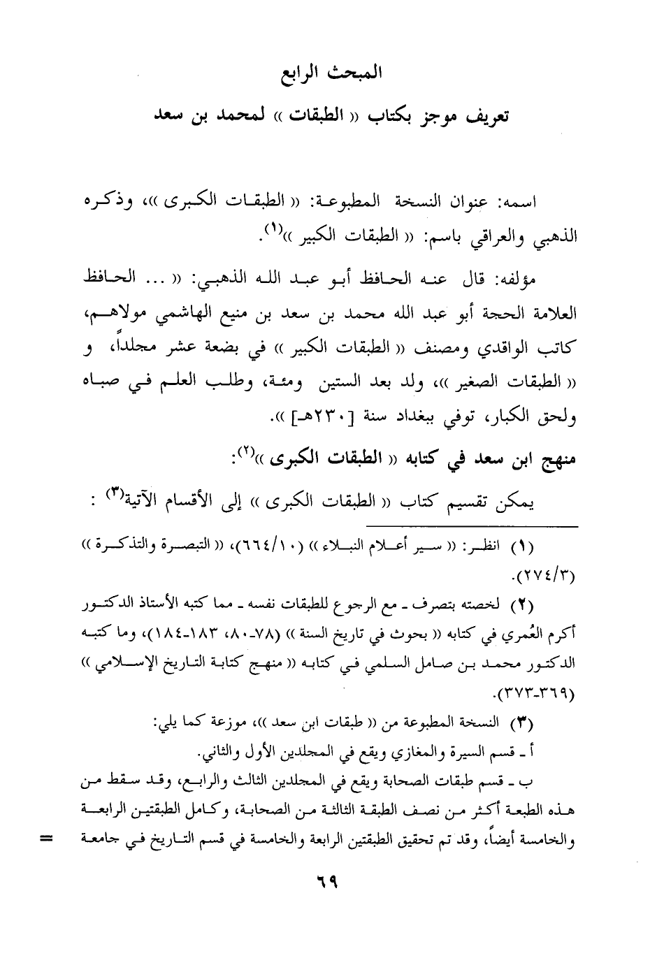 المبحث الرابع: تعريف موجز بكتاب "الطبقات" لمحمد بن سعد