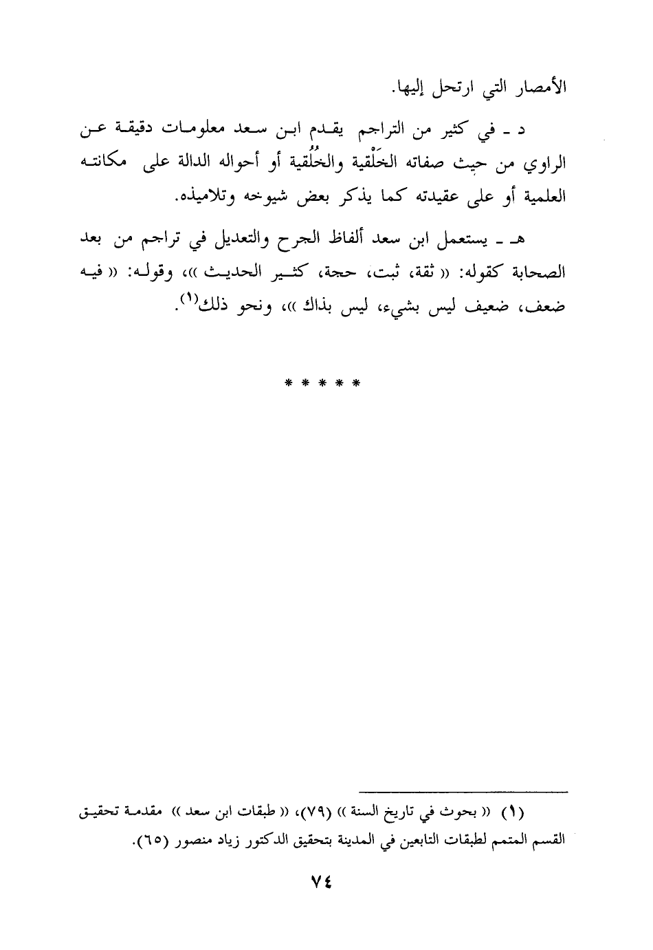 1بحوث في تاريخ السنة (ص: 79) ، طبقات ابن سعد، مقدمة تحقيق القسم المتمم لطبقات التابعين في المدينة بتحقيق الدكتور زياد منصور (ص: 65) .