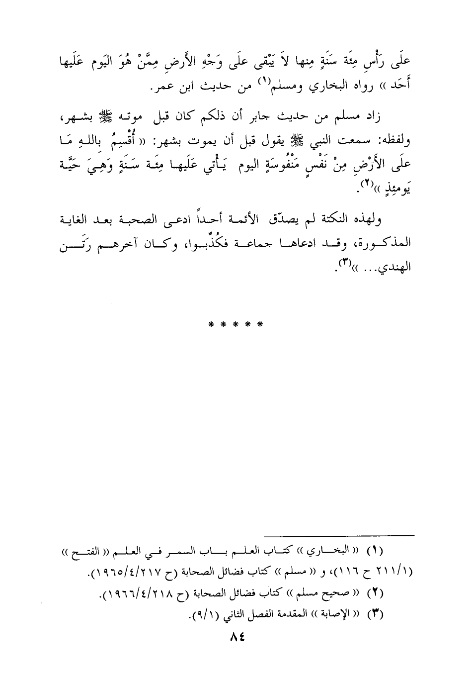رَأْسَ مِائَةِ سَنَةٍ مِنْهَا لا يَبْقَى عَلَى وَجْهِ الأَرْضِ مِمَّنْ هُوَ اليَوْمَ عَلَيها أَحَدٌ" رواه البخاري ومسلم 1 من حديث ابن عمر.