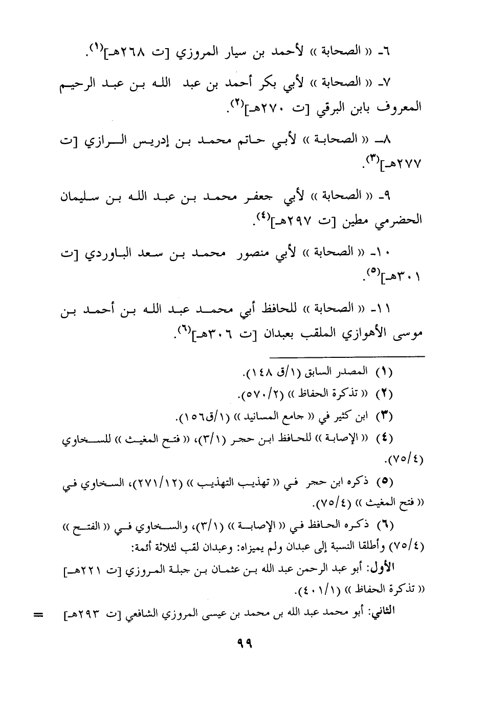 11- الصحابة للحافظ أبي محمد عبد الله بن أحمد بن موسى الأهوازي الملقب بعبدان (ت 306 هـ) . 6