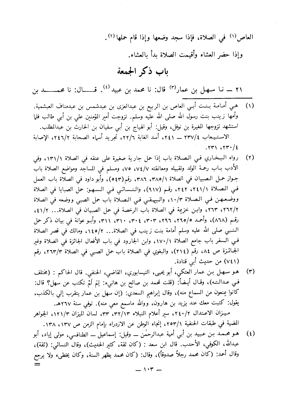 21 - نا سَهْلُ بْنُ عَمَّارٍ، قَالَ: نا مُحَمَّدُ بْنُ عُبَيْدٍ، قَالَ: نا مُحَمَّدُ بْنُ