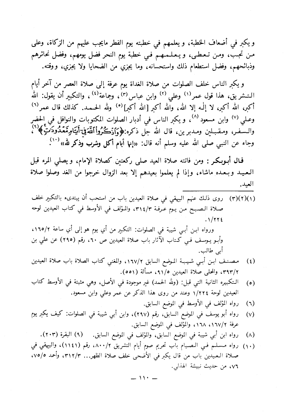 ويكبر الناس في أدبار الصلوات المكتوبات والنوافل في الحضر والسفر، ومقبلين ومدبرين، قَالَ اللَّه جل ذكره: {وَاذْكُرُوا اللَّهَ فِي أَيَّامٍ مَعْدُودَاتٍ} [البقرة: 203] ، وجاء عَنِ النَّبِيِّ صَلَّى اللَّهُ عَلَيْهِ وَسَلَّمَ، أنه قَالَ: «إنها أيام أكل وشرب وذكر اللَّه» .