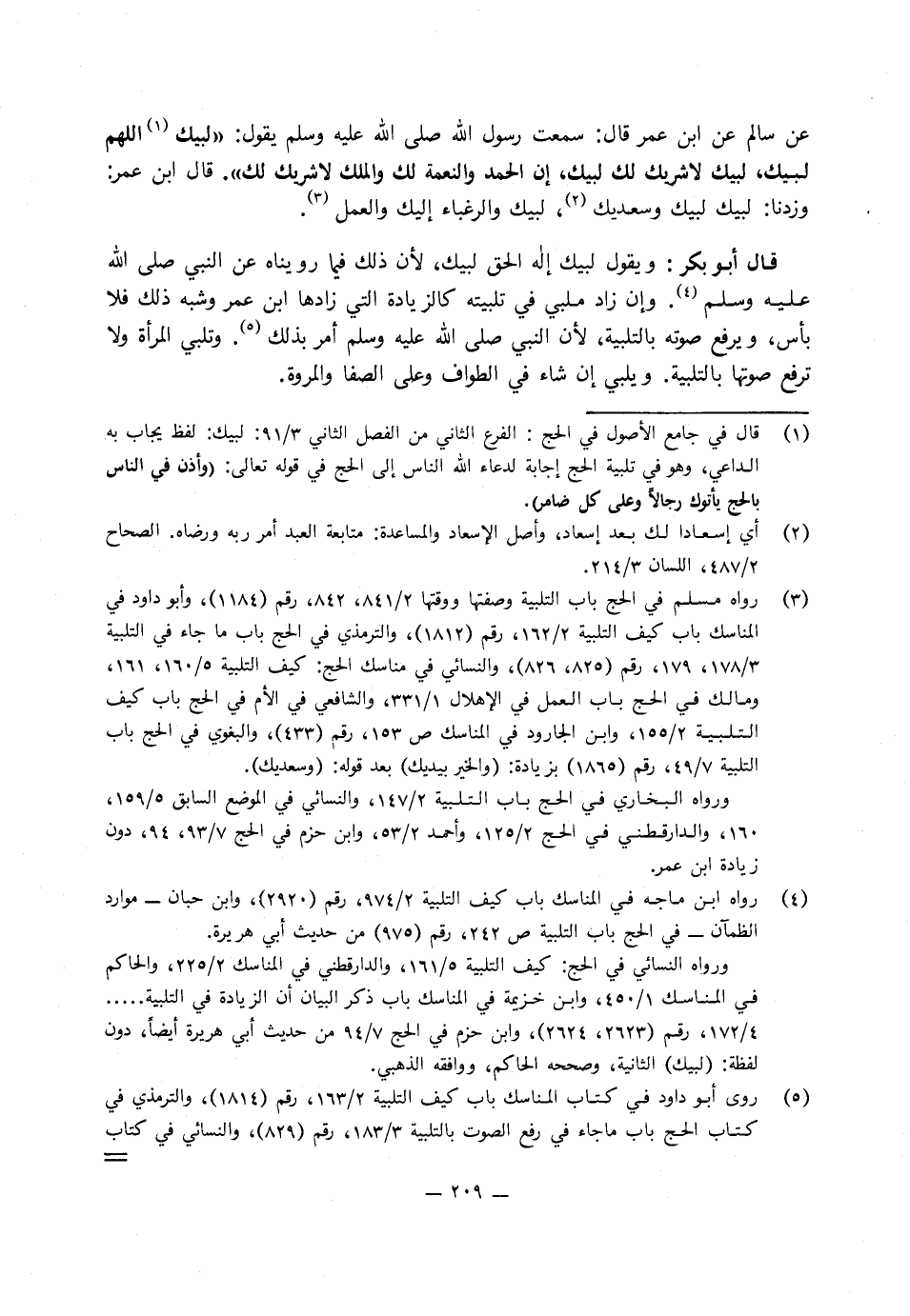 عَنْ سَالِمٍ، عَنِ ابْنِ عُمَرَ، قَالَ: سَمِعْتُ رَسُولَ اللَّهِ صَلَّى اللَّهُ عَلَيْهِ وَسَلَّمَ، يَقُولُ: «لَبَّيْكَ اللَّهُمَّ لَبَّيْكَ، لَبَّيْكَ لا شَرِيكَ لَكَ لَبَّيْكَ، إِنَّ الْحَمْدَ وَالنِّعْمَةَ لَكَ وَالْمُلْكَ لا شَرِيكَ لَكَ» .