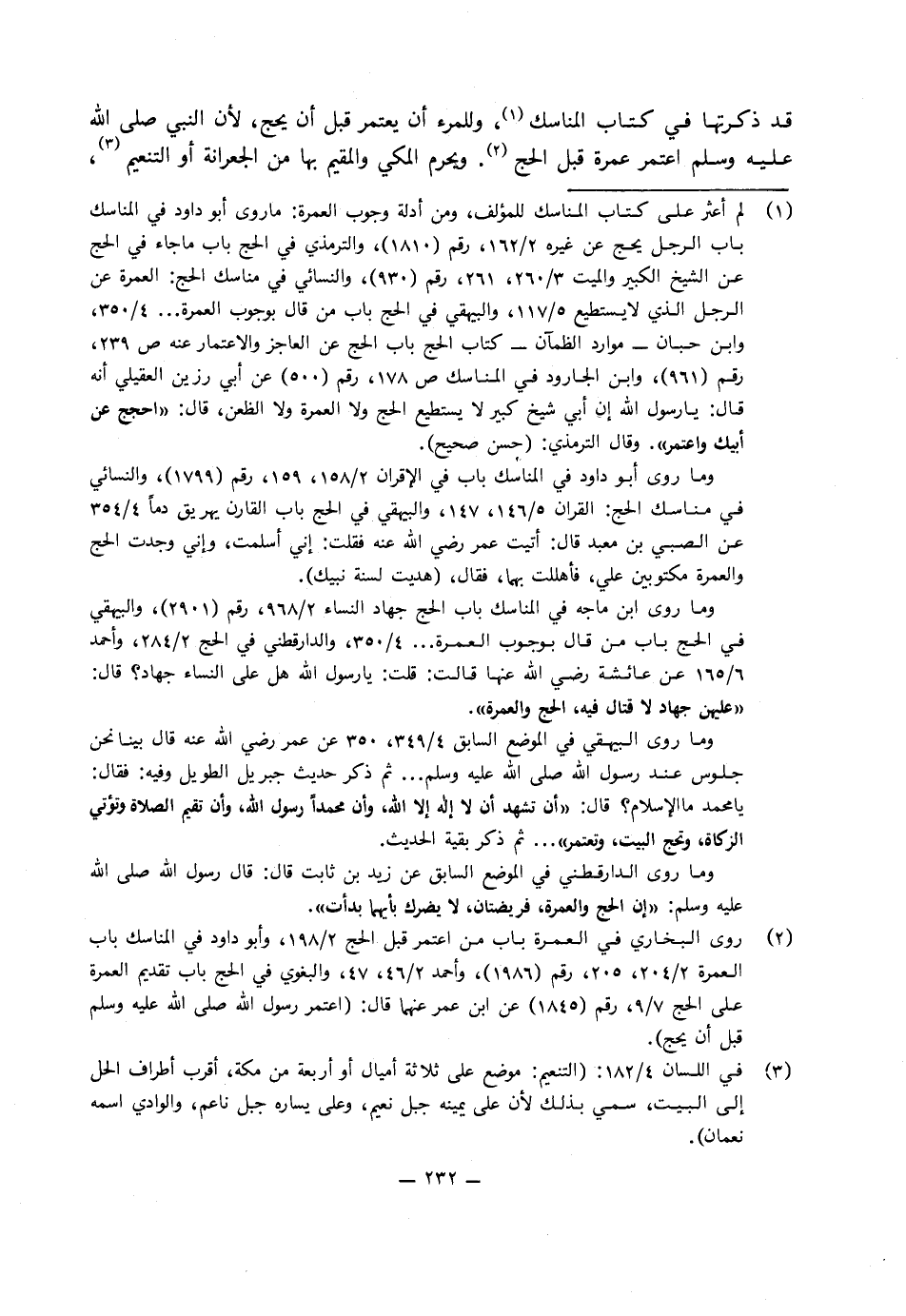 قد ذكرتها في كتاب المناسك، وللمرء أن يعتمر قبل أن يحج، لأن النَّبِيّ صَلَّى اللَّهُ عَلَيْهِ وَسَلَّمَ «اعتمر عمرة قبل الحج» ، ويحرم المكي والمقيم بها من الجعرانة أو التنعيم،