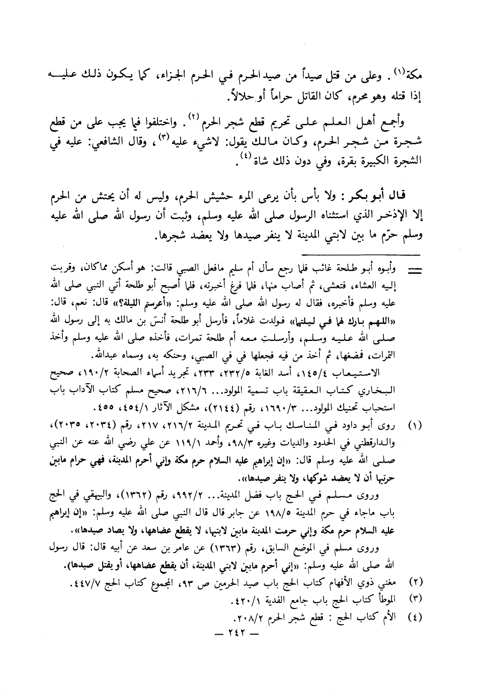 وَلا بأس بأن يرعى المرء حشيش الحرم وليس لَهُ أن يحتش من الحرم إلا الإذخر الذي استثناه الرسول، وثبت أَنَّ رَسُولَ اللَّهِ صَلَّى اللَّهُ عَلَيْهِ وَسَلَّمَ «حرم مَا بين لابتي المدينة لا ينفر صيدها، وَلا يعضد شجرها» .