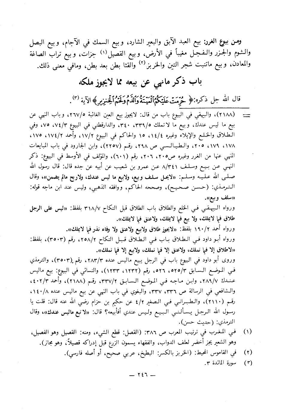 باب ذكر مَا نهي عن بيعه مما لا يجوز ملكه