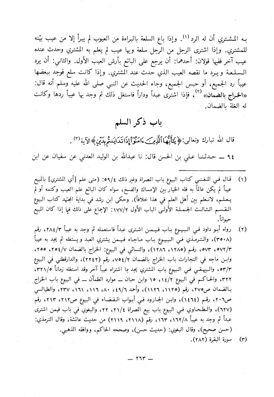 وإذا كانت سلع فوجد ببعضها عيبًا رد الجميع، أو حبس الجميع، وجاء الحديث عَنِ النَّبِيِّ صَلَّى اللَّهُ عَلَيْهِ وَسَلَّمَ، أنه قَالَ: «الخراج بالضمان» .