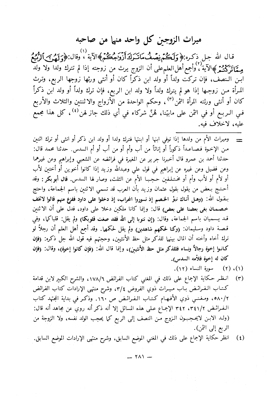باب ميراث الزوجين كل واحد منهما من صاحبه