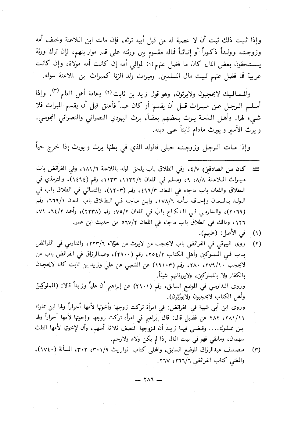 وإذا ثبت ذَلِكَ ثبت أن لا عصبة لَهُ من قبل أَبِيهِ ترثه، فإن مات ابن الملاعنة وخلف أمه وزوجته وولدا ذكورا أو إناثًا فماله مقسوم بين ورثته عَلَى قدر مواريثهم، فإن ترك ورثة يستحقون بعض المال كَانَ مَا فضل عليهم لموالي أمه إن كانت أمه مولاة، وإن كانت عربية فما فضل عنهم لبيت مال المسلمين، وميراث ولد الزنى كميراث ابن الملاعنة سواء، والمماليك لا يحجبون وَلا يرثون وهو قول زيد بن ثابت وعامة أهل العلم، وإذا أسلم الرجل عن ميراث قبل أن يقسم الميراث فلا شيء لهما، وأهل الذمة يرث بعضهم بعضا، يرث اليهودي النصراني، والنصراني المجوسي.